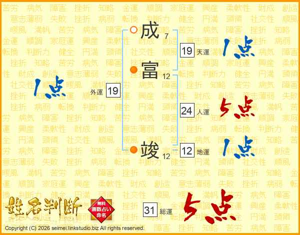 金運 順調 家庭運 興産 柔軟性 財成 創造