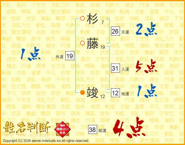 杉藤竣さんの天運は26画の2点!
