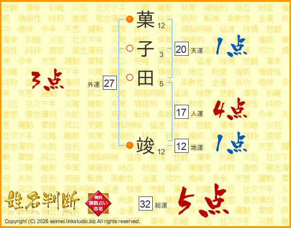 菓子田竣さんの総運は32画の5点!
