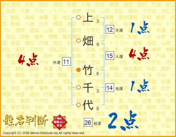 上畑竹千代さんの総運は26画の2点!