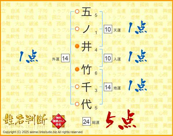 五ノ井竹千代さんの総運は24画の5点!