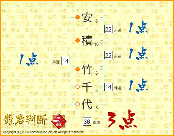 安積竹千代さんの総運は36画の3点!