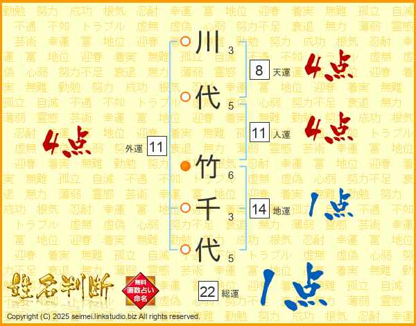 川(3画)代(5画) 竹(6画)千(3画)代(5画)