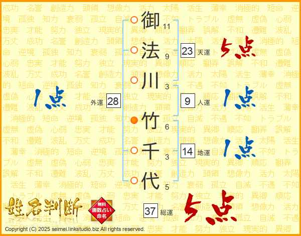 御法川竹千代さんの総運は37画の5点!