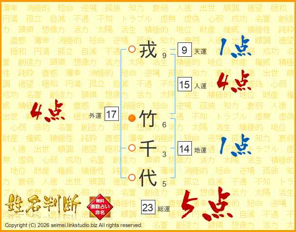 戎竹千代さんの総運は23画の5点!