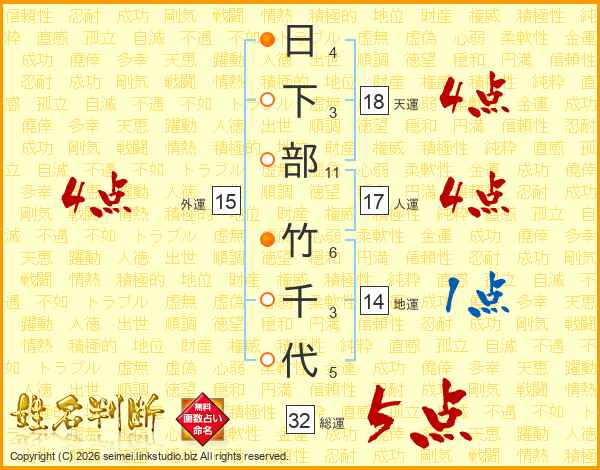 日下部竹千代さんの総運は32画の5点!