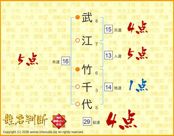 武(8画)江(7画) 竹(6画)千(3画)代(5画)