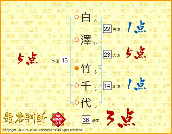 白(5画)澤(17画) 竹(6画)千(3画)代(5画)