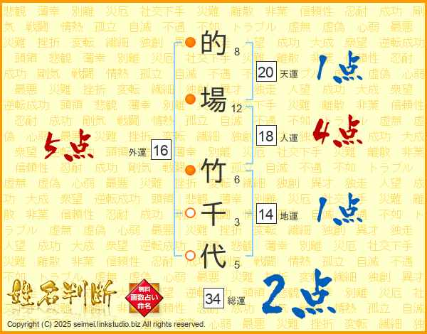 的場竹千代さんの総運は34画の2点!