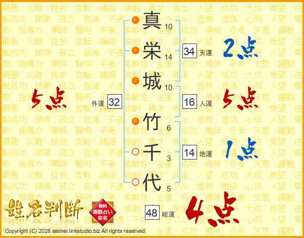 真(10画)栄(14画)城(10画) 竹(6画)千(3画)代(5画)