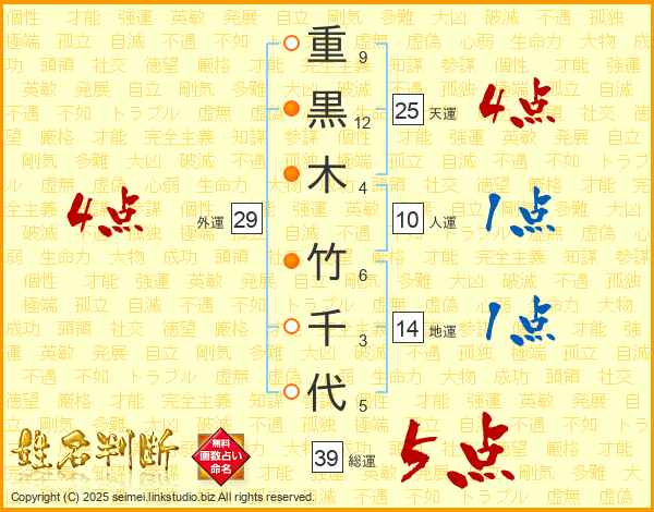 重(9画)黒(12画)木(4画) 竹(6画)千(3画)代(5画)