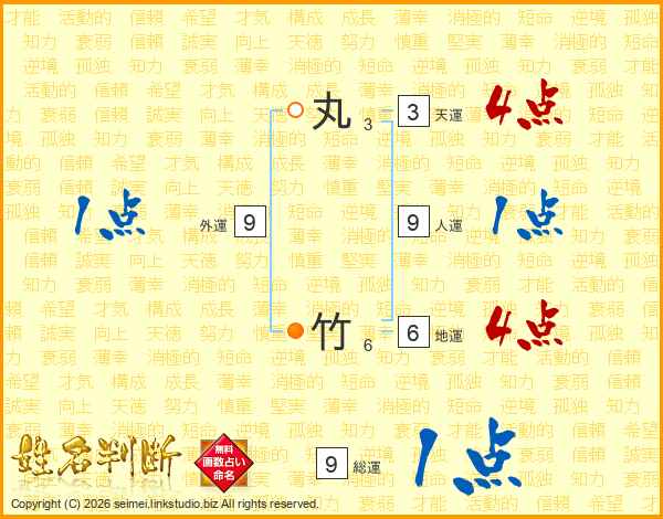 画数の奇数(○陽)と偶数(●陰)の配列で吉凶を占います。どちらかにかたよる名前は大凶名で避ける必要があります。画数の奇数偶数。