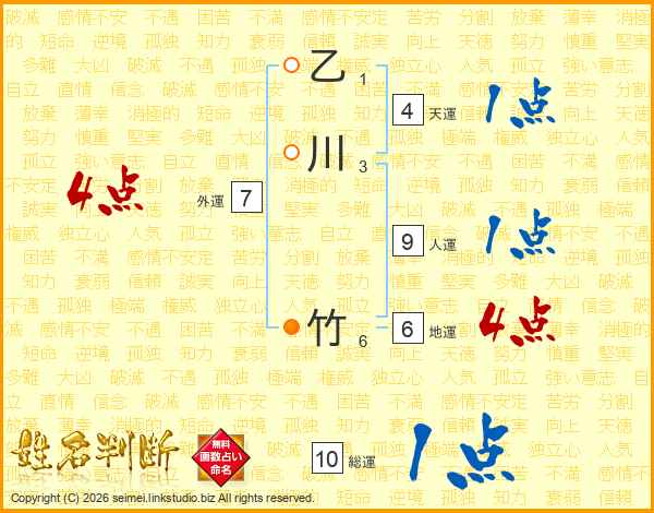 乙川竹さんの総運は10画の1点!