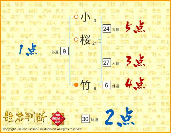 小桜竹さんの総運は30画の2点!