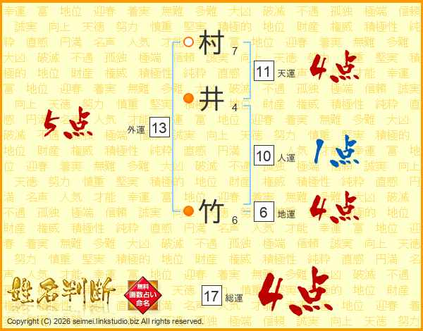 村井竹さんの天運は11画の4点