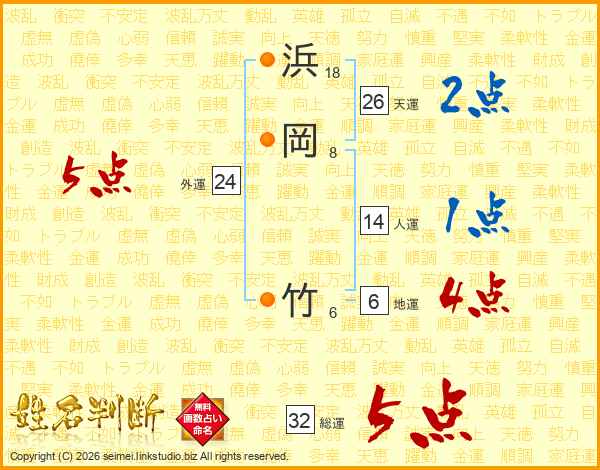 浜岡竹さんの総運は32画の5点!
