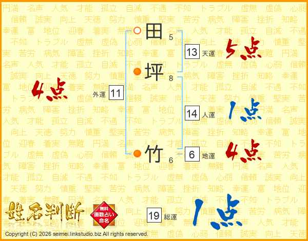 田坪竹さんの総運は19画の1点!