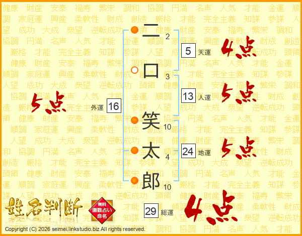 二口笑太郎さんの総運は29画の4点!