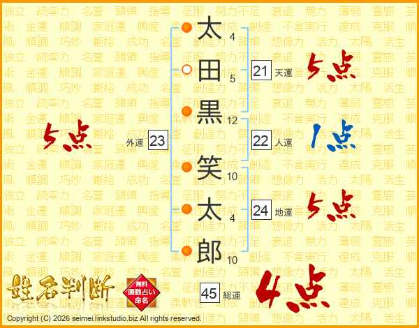 太田黒笑太郎さんの総運は45画の4点!