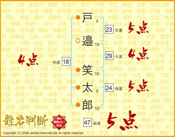 戸邉笑太郎さんの総運は47画の5点!