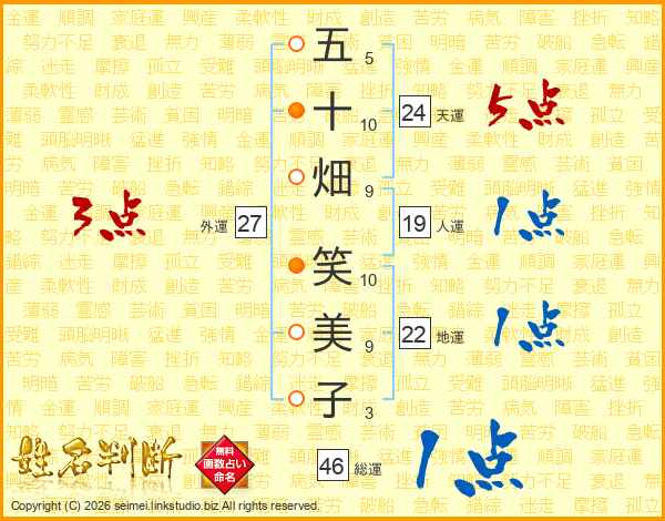 五十畑笑美子さんの総運は46画の1点!