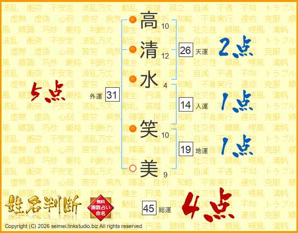 高清水笑美さんの天運は26画の2点!