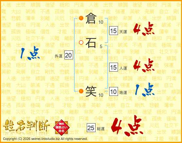倉石笑さんの総運は25画の4点!