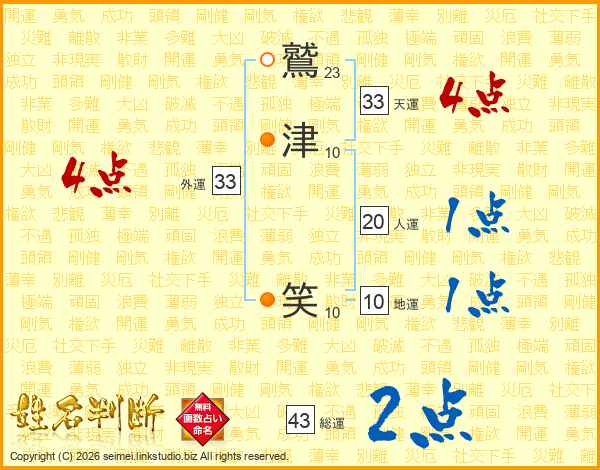 鷲津笑さんの天運は33画の4点!