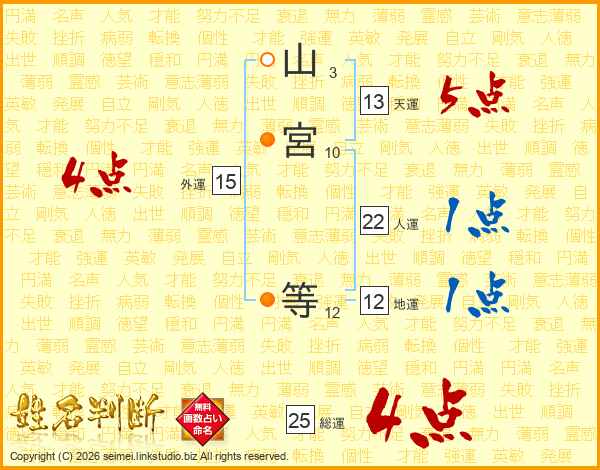 山宮等さんの総運は25画の4点!