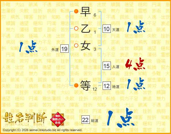 早乙女等さんの総運は22画の1点!