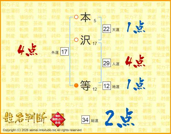 本沢等さんの総運は34画の2点!