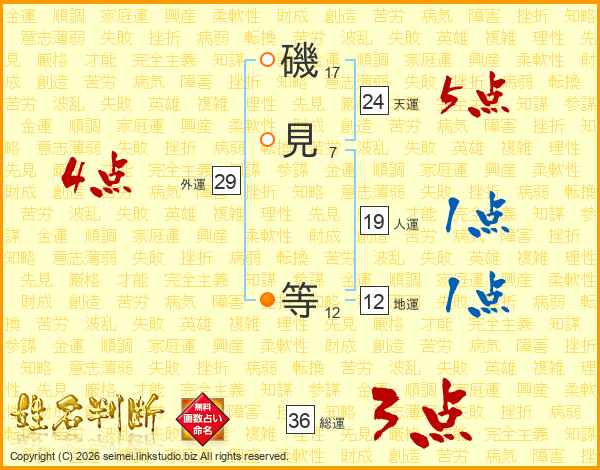 磯見等さんの総運は36画の3点!