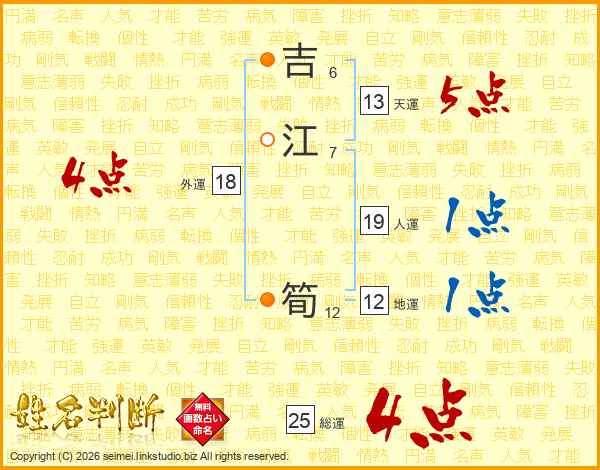 吉江筍さんの総運は25画の4点!
