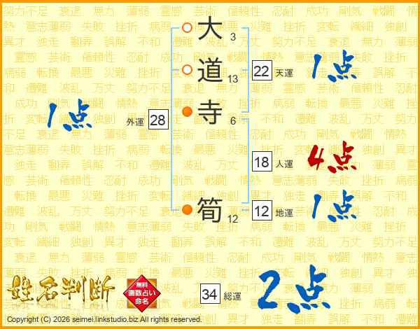 大道寺筍さんの総運は34画の2点!