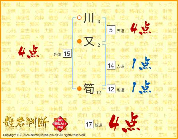 川又筍さんの総運は17画の4点!
