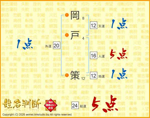 岡戸策さんの総運は24画の5点!