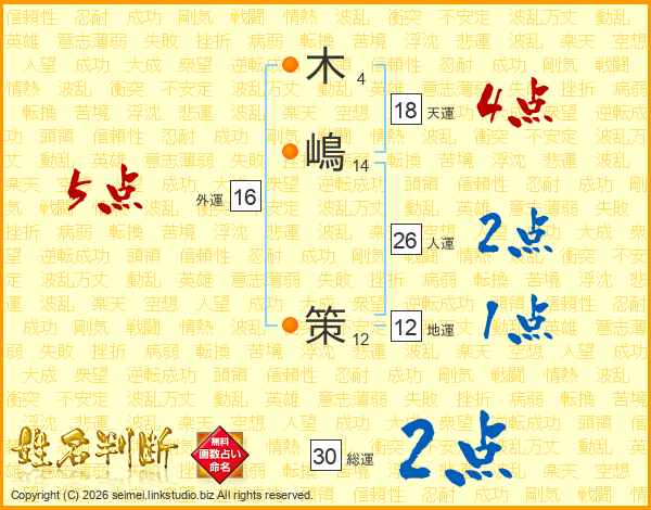 木(4画)嶋(14画) 策(12画)