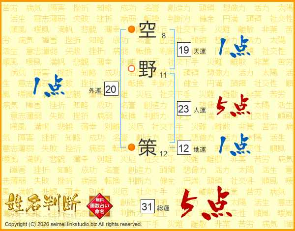 空野策さんの総運は31画の5点!