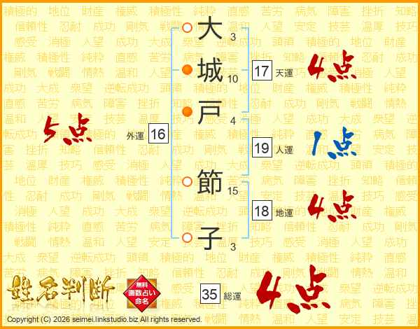 大(3画)城(10画)戸(4画) 節(15画)子(3画)