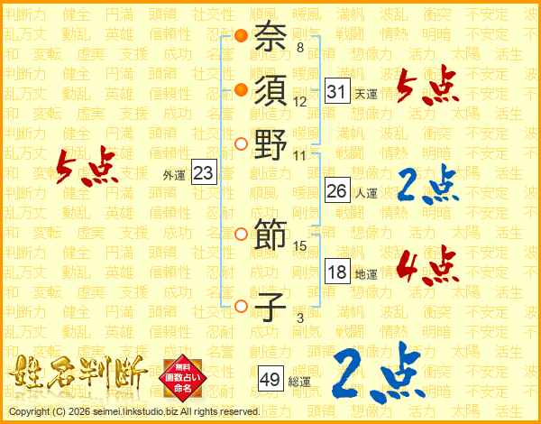 奈須野節子さんの総運は49画の2点!