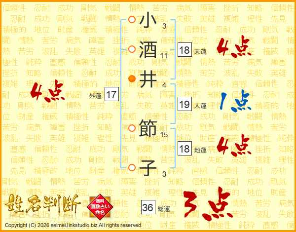 小酒井節子さんの天運は18画の4点!
