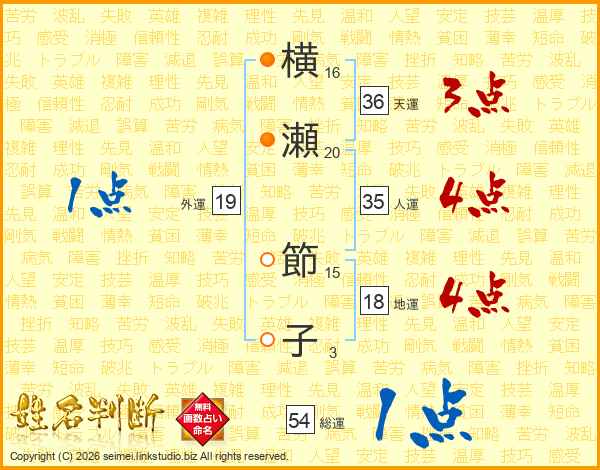 横瀬節子さんの総運は54画の1点!