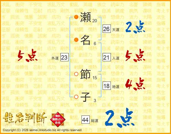 瀬名節子さんの総運は44画の2点!