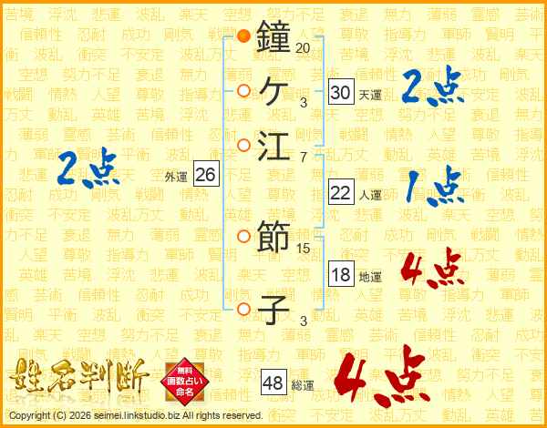 鐘ケ江節子さんの総運は48画の4点!