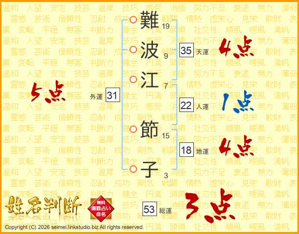 難(19画)波(9画)江(7画) 節(15画)子(3画)