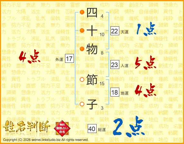 四十物節子さんの総運は40画の2点!