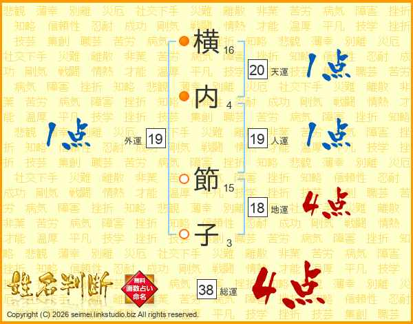 横内節子さんの総運は38画の4点!