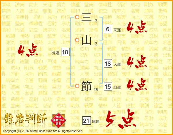 三山節さんの総運は21画の5点!