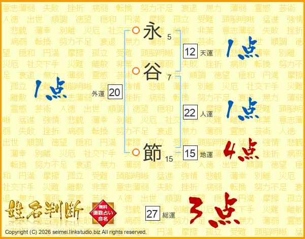 永(5画)谷(7画) 節(15画)