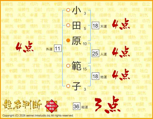 小田原範子さんの天運は18画の4点!